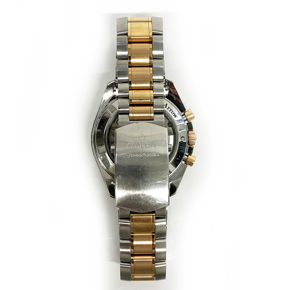 Omega Speedmaster Broad Arrow Men's Watch Model 321.90.42.50.13.001. Brushed and Polished Stainless Steel case with Brushed with Polished 18k Rose Gold and Stainless Steel watch band. Deployment Buckle clasp. Fixed with Tachymeter Scale bezel. Dial description: Brown Chronograph with Rose Gold Hands and Markers dial. Brown dial. Automatic Self Winding COSC with Approx. 52hr Power Reserve movement. 18k Rose Gold crown. Scratch Resistant Sapphire crystal. Case size: 42mm. Case thickness: 14.5mm. 100 Meters / 330 Feet water resistant.