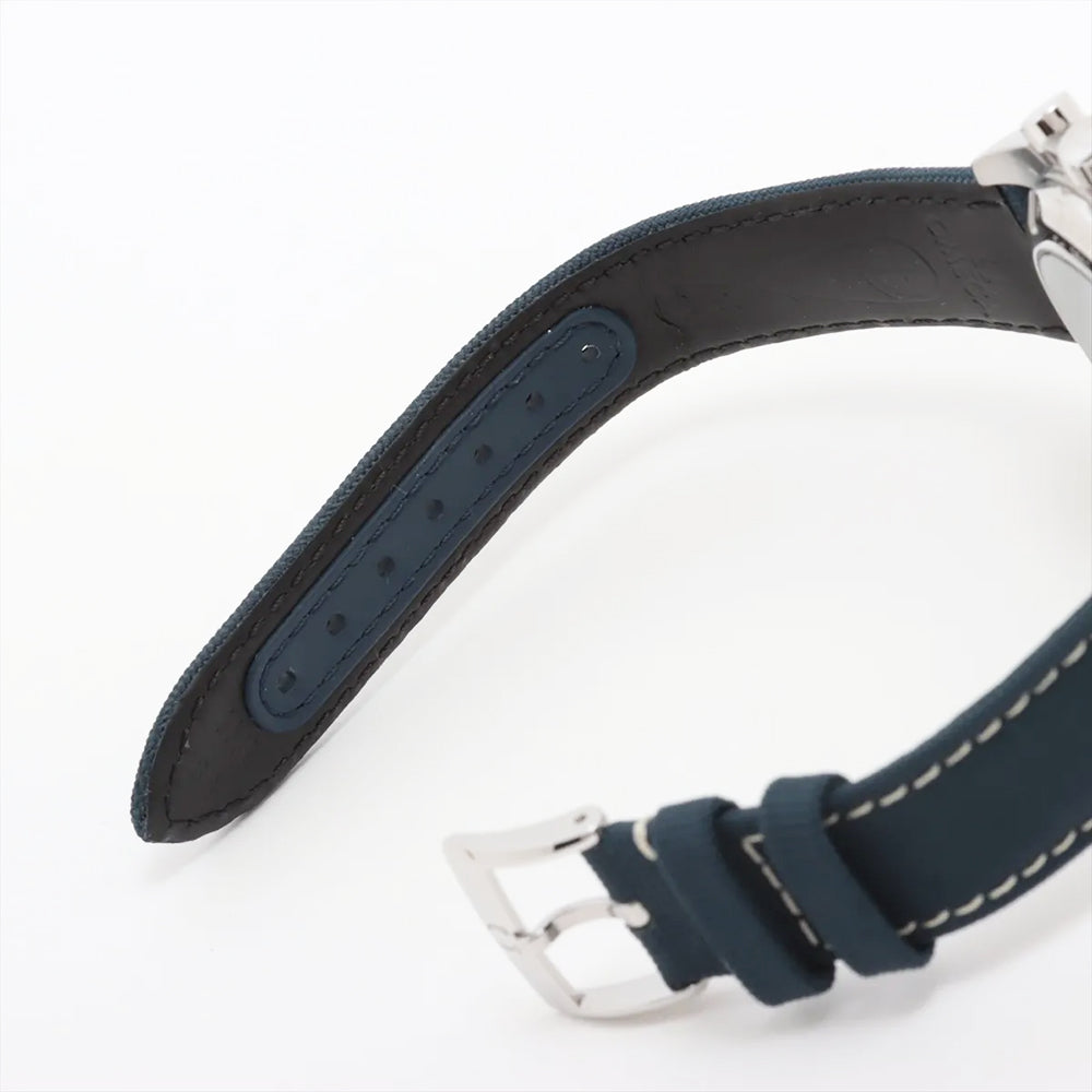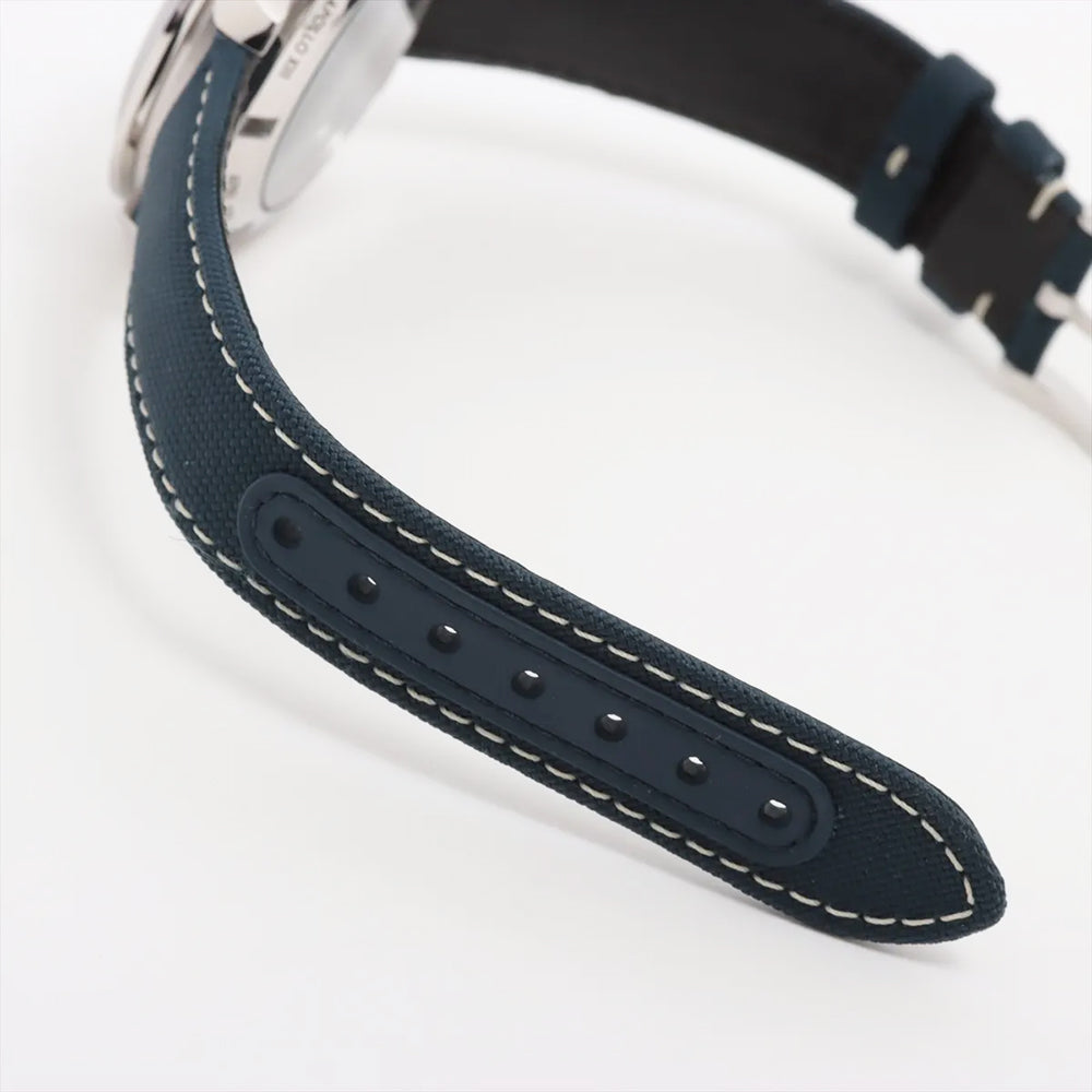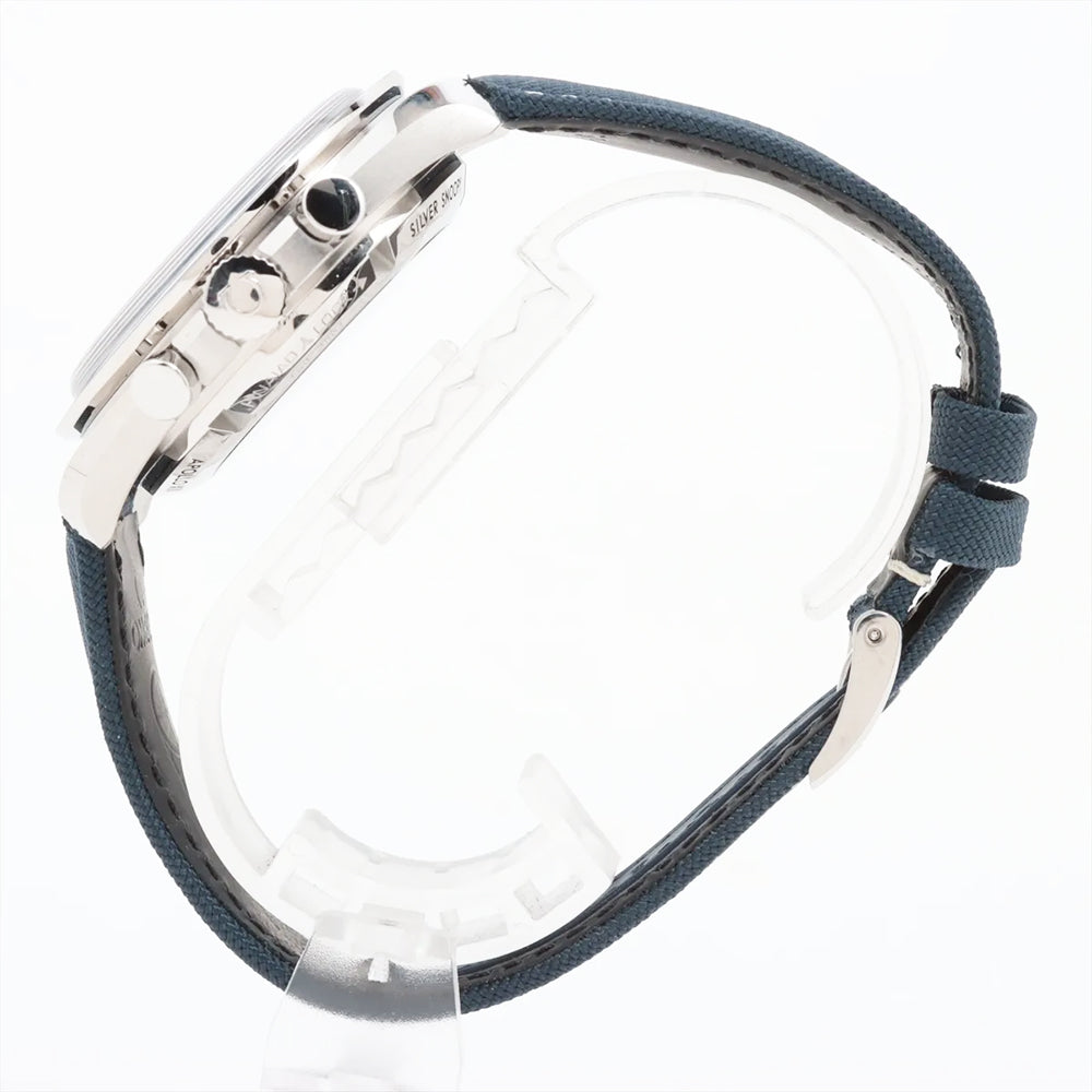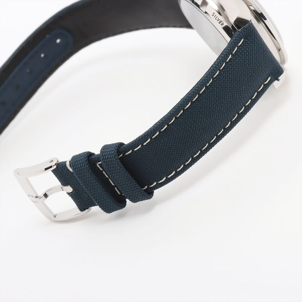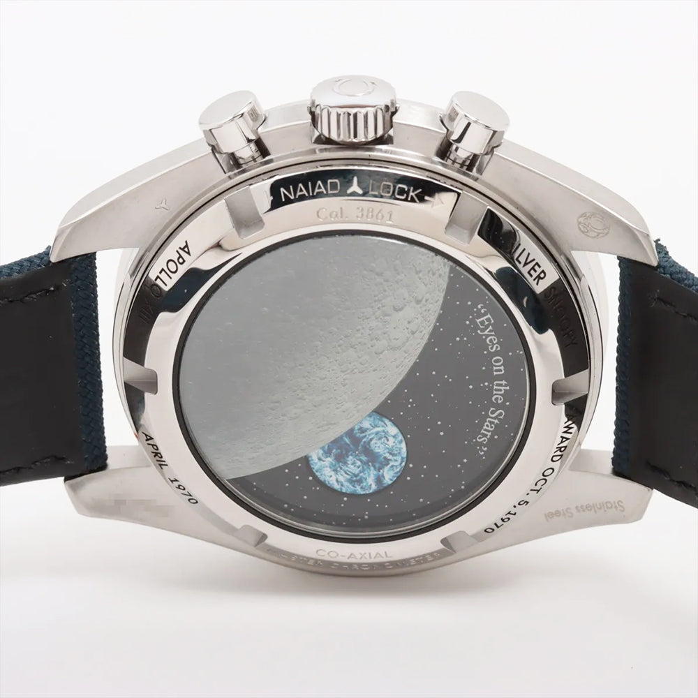 Omega Speedmaster Moonwatch 50th Anniversary Silver Snoopy Award Men's Luxury Watch Model 310.32.42.50.02.001. Brushed and Polished Stainless Steel case with Blue fabric strap. Brushed and Polished Stainless Steel Tang clasp. Fixed. Tachymeter Scale bezel. Dial description: Luminous Blue Hands and Stick Hour Markers with Minute Markers Around the Outer Rim and 3 Sub-dials on a Silver dial. Swiss Manual Winding. Chronometer. Chronograph movement. Chronograph sub-dials display: 60 Second, 30 Minute, 12 Hours. Powered by Omega Calibre 3861 engine with 50 hours power reserve. Watch functions: Power Reserve, Hour, Minute, Second, Chronograph, Speed. Push-Pull crown. Scratch Resistant Sapphire crystal. Round case shape. Case size: 42mm. Case thickness: 14.50mm. Solid case back. 50 Meters - 165 Feet water resistant.