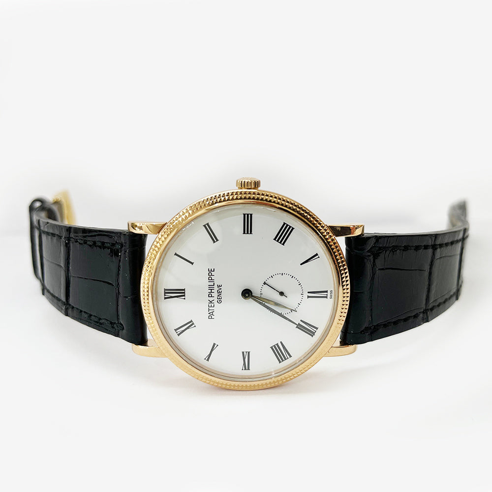 18kt rose gold case with a black alligator leather strap. 18kt rose gold bezel. White dial with black hands and Roman numeral hour markers. Dial Type: Analog. Seconds sub-dial at the 6 o'clock position. Manual winding movement with a 44-hour power reserve. Scratch resistant sapphire crystal. Fluted pull / push crown. Sapphire crystal case back. Case diameter: 36 mm. Case thickness: 6.5 mm. Round case shape. Band width: 20.3 mm. Band length: 8 inches. Deployment clasp. Water resistant at 30 meters / 100 feet. Functions: hours, minutes, second.