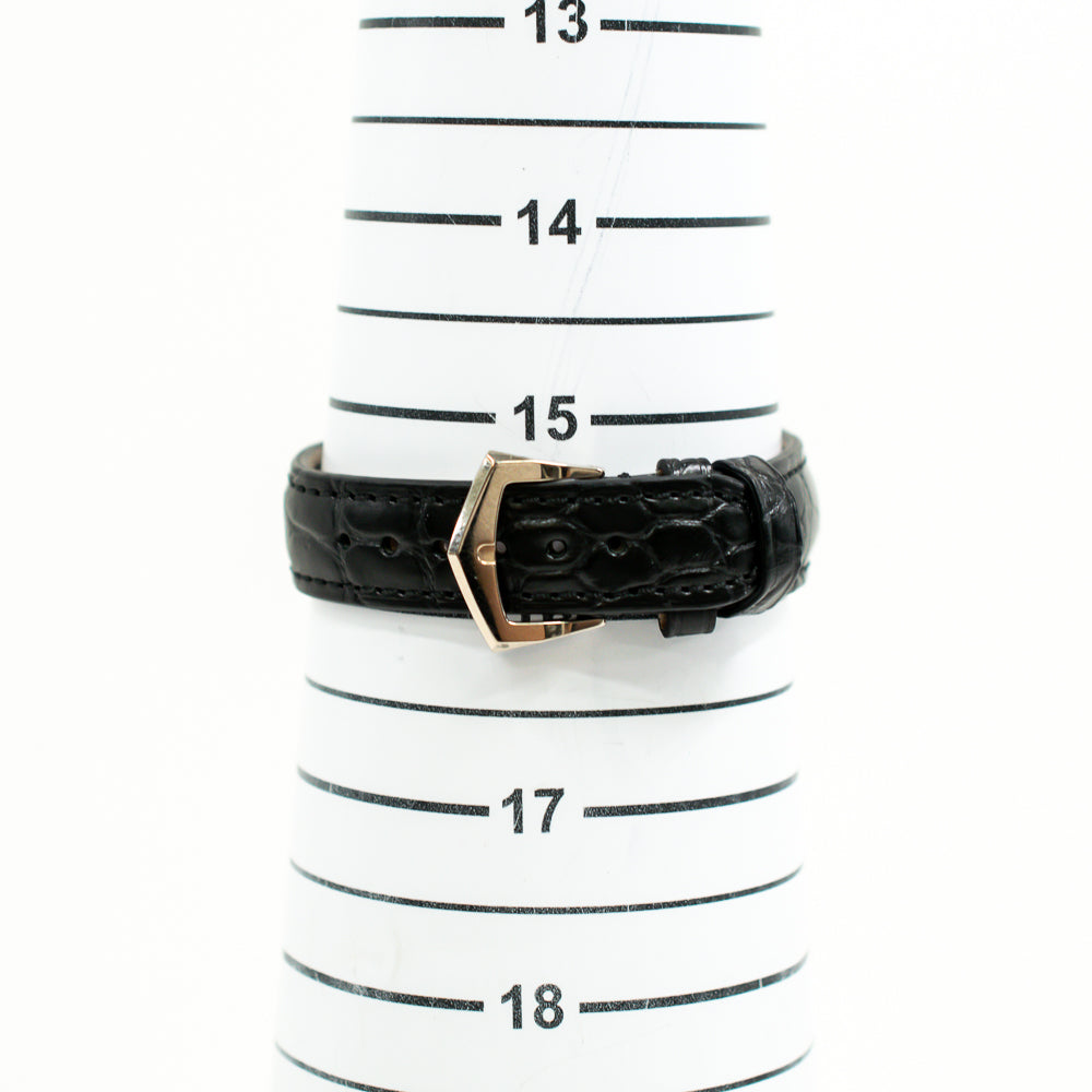 18kt white gold case with a black leather strap. Fixed 18kt white gold hobnail pattern bezel. White dial with black hands and roman numeral hour markers. Dial Type: Analog. Small second sub-dial at the 6 p'clock position. Patek Philippe calibre 215 PS hand wind movement with a 44-hour power reserve. Scratch resistant sapphire crystal. Pull / push crown. Transparent case back. Case size: 31 mm. Round case shape. Tang clasp. Water resistant at 30 meters / 100 feet. Functions: hour, minute, small second. Casual watch style.