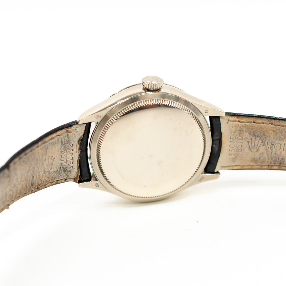 Case: 18K white gold round case 39.0 mm in diameter. Rolex logo on the fluted crown.