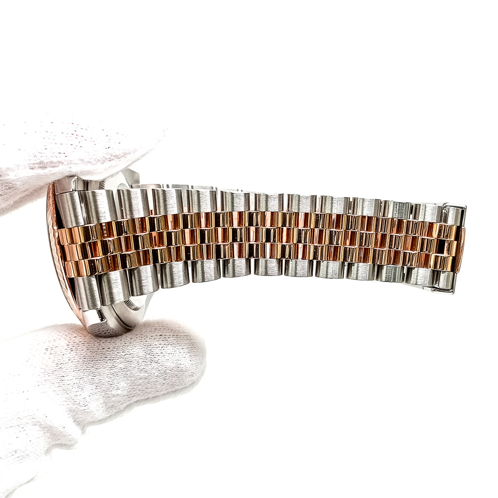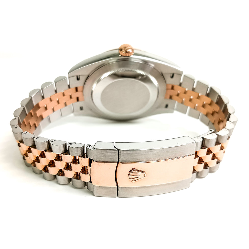 Bracelet: Stainless steel and 18k Everose rose gold jubilee bracelet with an oysterlock clasp. Fits a 7 1/4" wrist.