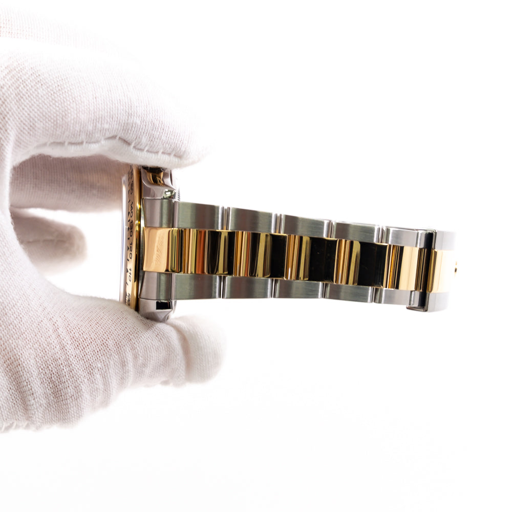 Bracelet: Stainless steel and 18K yellow gold oyster bracelet with a flip-lock clasp.
