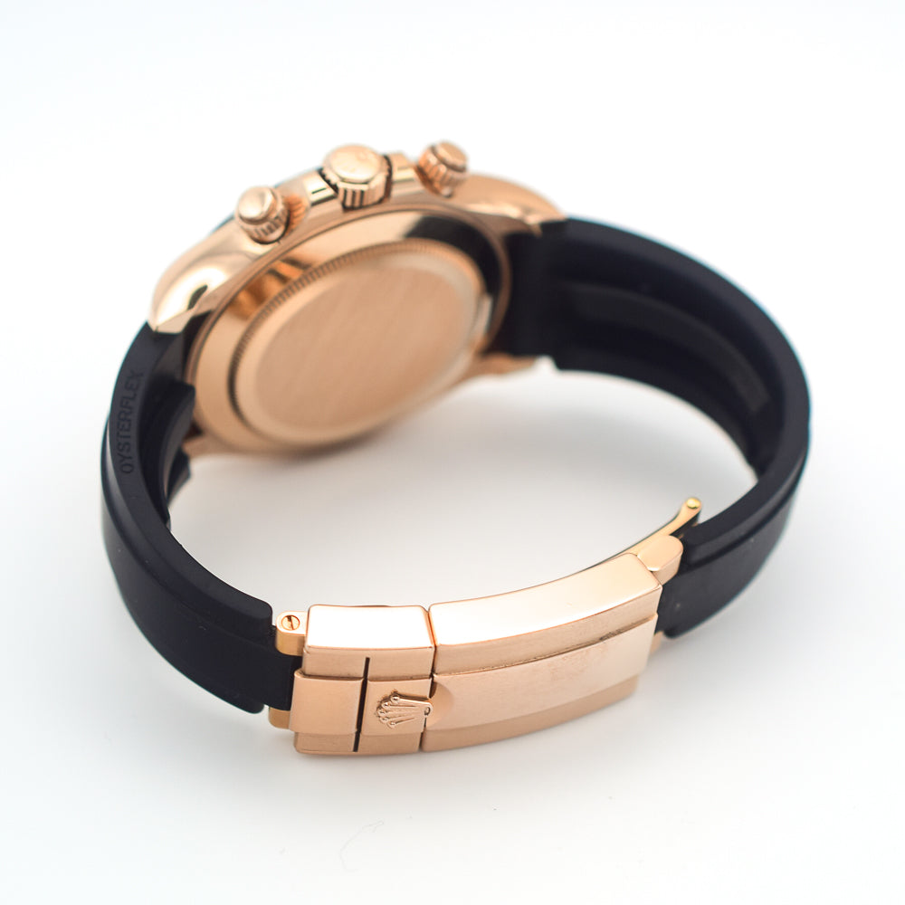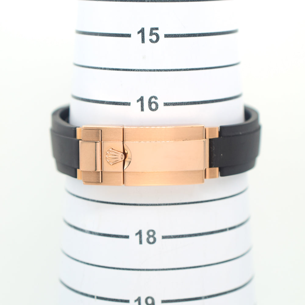 Bracelet: Black rubber Oysterflex bracelet with an 18k rose gold flip-lock clasp and easylink micro-adjustment.