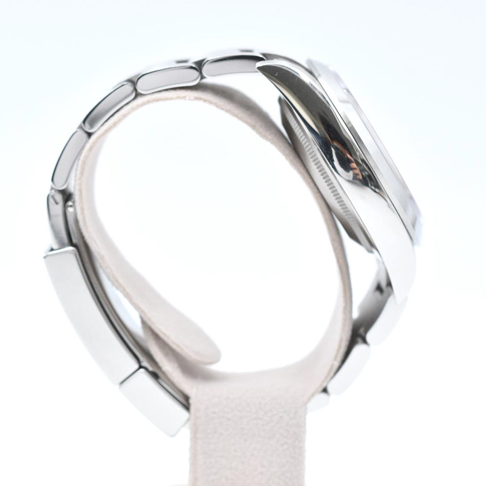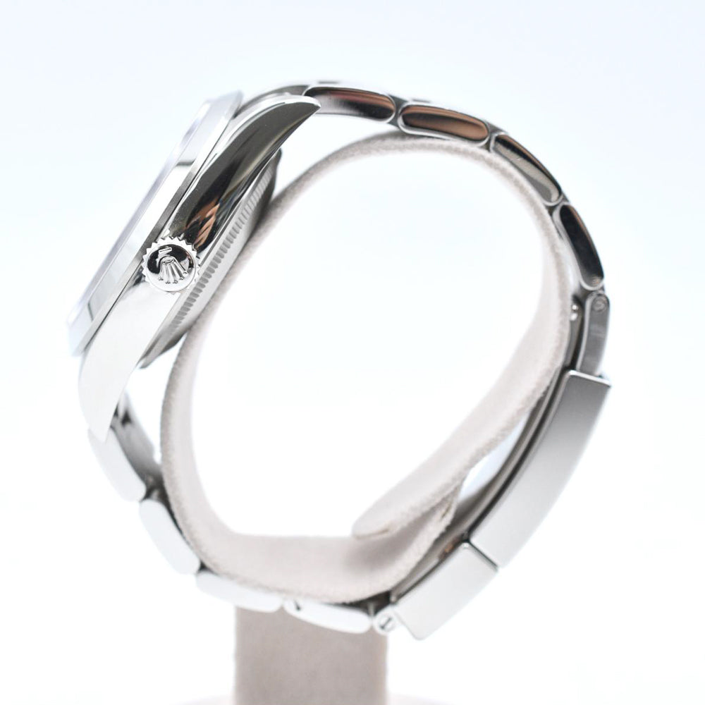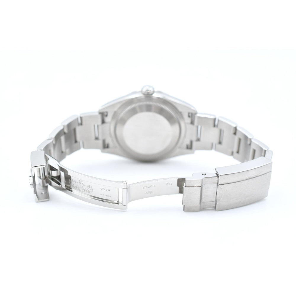 Stainless steel case with a stainless steel oyster bracelet. Fixed stainless steel bezel. Black dial with luminous silver-tone hands and index hour markers. Arabic numerals appear at the 3, 6 and 9 o'clock positions. Minute markers around the outer rim. Dial Type: Analog. Rolex calibre 3230 automatic movement, containing 31 Jewels, bitting at 28800 vph, and has a power reserve of approximately 70 hours. Scratch resistant sapphire crystal. Screw down crown. Solid case back. Round case shape. Case size: 36 mm. Oysterlock clasp. Water resistant at 100 meters / 330 feet. Functions: hour, minute, second, chronometer.