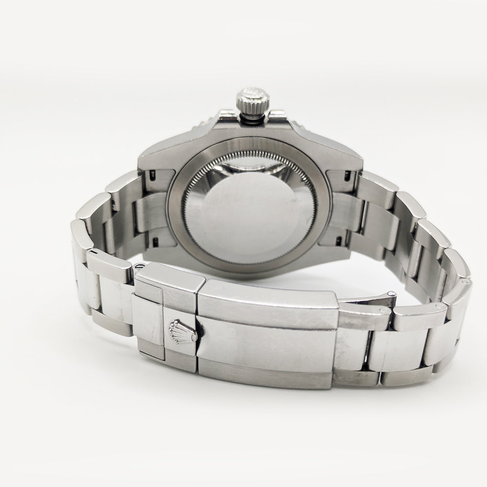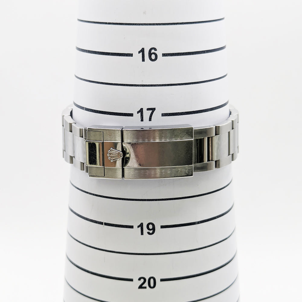 Brushed and Polished Stainless Steel case with Brushed and Polished Stainless Steel Oyster Style Bracelet watch band. Oysterclasp clasp. Bi-Directional Rotating bezel. Dial description: Luminescent White Gold Hands and Index Hour Markers With the Date Displayed at 3, on a Black Dial. dial. Automatic - Chronometer movement. Powered by Rolex Calibre 3285 engine with 70 hours power reserve. Watch functions: Date, 24 Hour, Power Reserve, Hour, Minute, Second, GMT. Screw in crown. Scratch Resistant Sapphire crystal. Round case shape. Case size: 40mm. Solid case back. 100 Meters - 330 Feet water resistant.