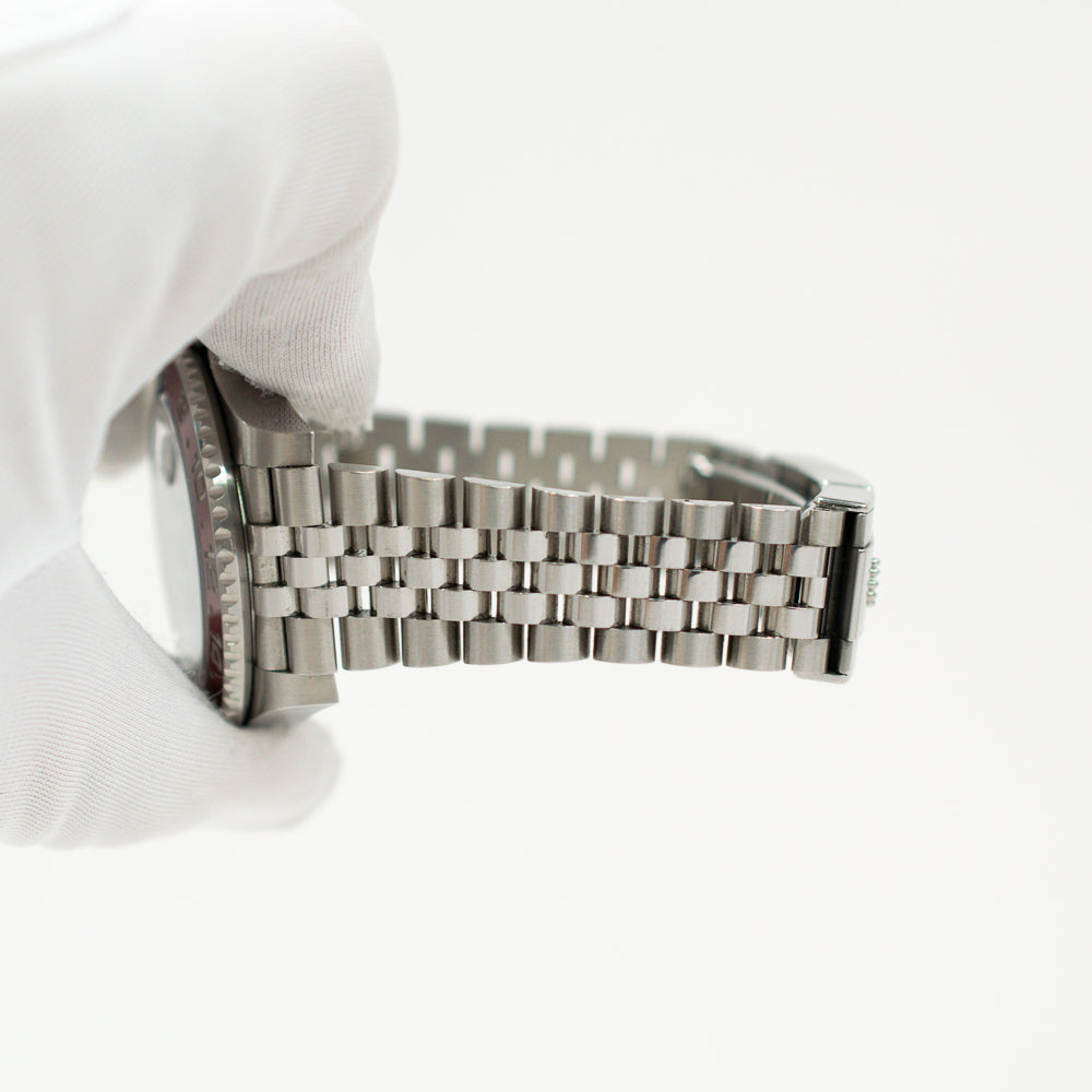 Stainless steel case with a stainless steel Rolex jubilee bracelet. Bi-directional rotating stainless steel bezel with a blue and red (Pepsi) ring. Black dial with luminous silver-tone Mercedes-logo, sword, and Breguet-style shape hands and dot hour markers. Minute markers around the outer rim. Dial Type: Analog. Luminescent hands and markers. Date display at the 3 o'clock position. Rolex calibre 3285 automatic movement, based upon Rolex 3255, containing 31 Jewels, bitting at 28800 vph, and has a power reserve of approximately 70 hours. Scratch resistant sapphire crystal. Screw down crown. Solid case back. Round case shape. Case size: 40 mm. Oyster clasp. Water resistant at 100 meters / 330 feet. Functions: date, hour, minute, second, 24 hours, GMT.