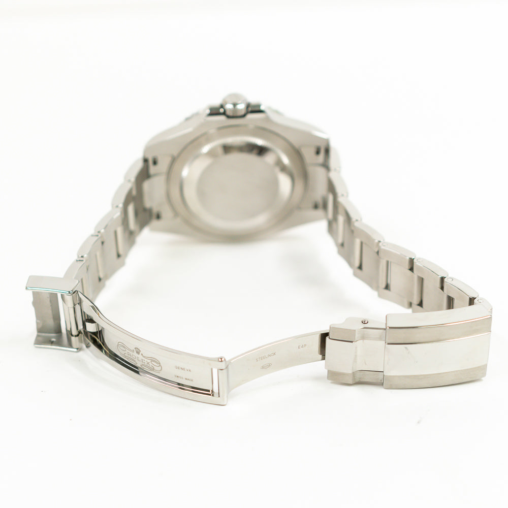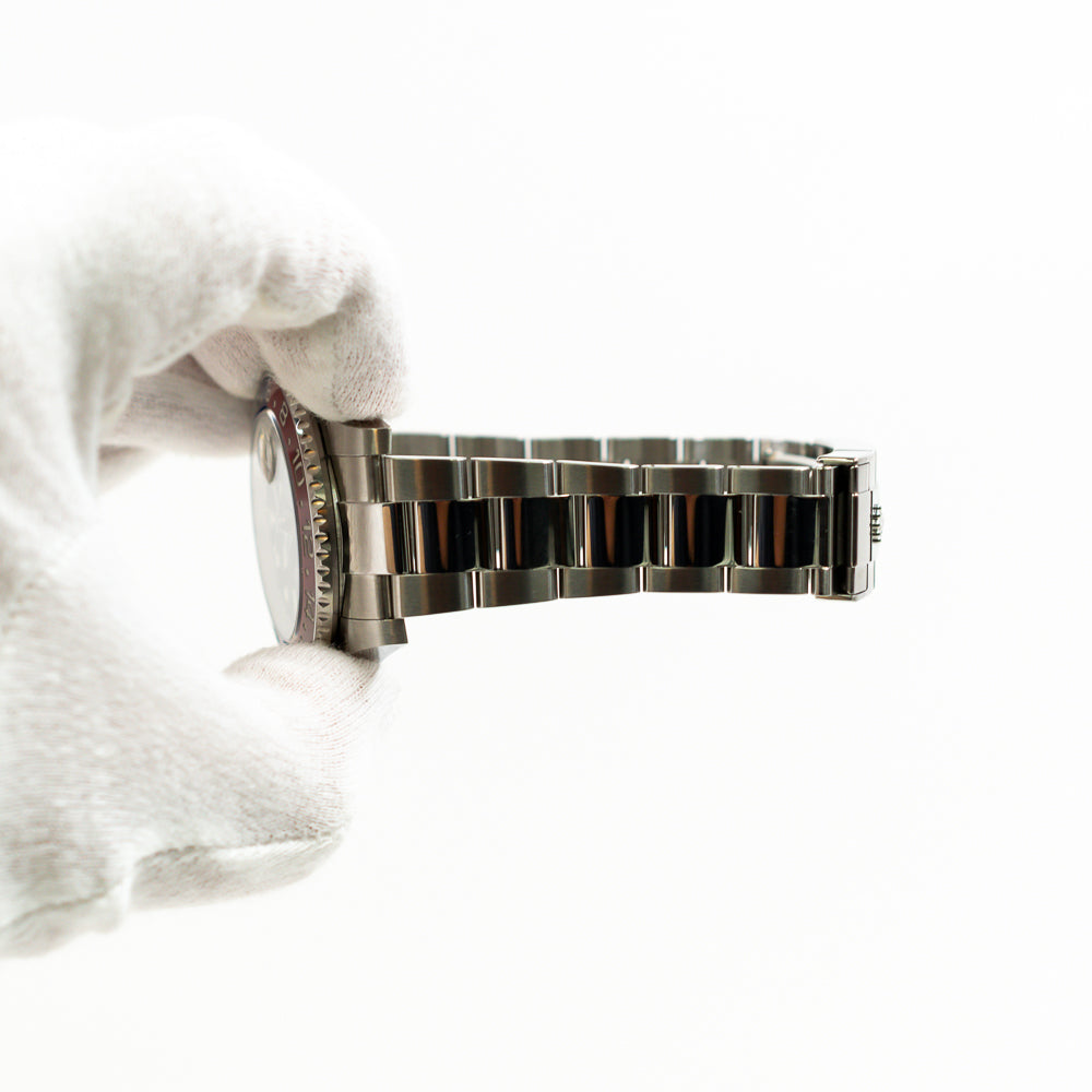 Stainless Steel case with Brushed and Polished Oyster Stainless Steel watch band. Oysterclasp clasp. Bi-Directional Rotating bezel. Dial description: Silver tone luminous hands and Circle/Index hour markers with minute markers around the outer rim on a Black dial. Automatic - Chronometer movement. Powered by Rolex Calibre 3285 engine with 70 hours power reserve. Watch functions: Date, 24 Hour, Power Reserve, Hour, Minute, Second, GMT. Screw Down crown. Scratch Resistant Sapphire crystal. Round case shape. Case size: 40mm. Solid case back. 100 Meters - 330 Feet water resistant.