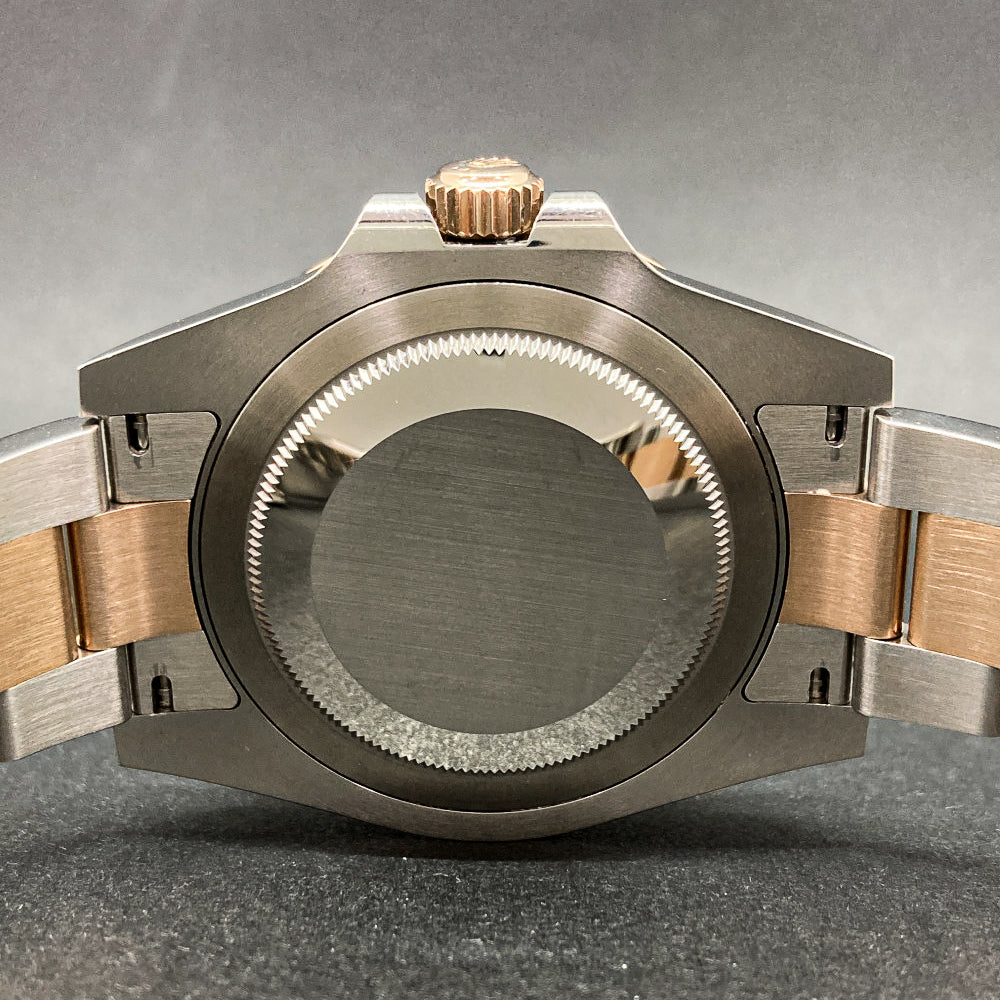 40mm Everose Rolesor case with Oystersteel monobloc middle case, screw-down Everose gold crown, Everose gold bidirectional rotatable 24-hour graduated bezel with brown and black Cerachrom insert and engraved numerals, scratch-resistant sapphire crystal with cyclops lens over the date, black dial, hour markers set with Chromalight, Rolex calibre 3285 self-winding movement with second time-zone hour hand and instantaneous date, approximately 70 hours of power reserve, Everose Rolesor Oyster bracelet with flat three-piece links, folding Oysterclasp buckle with Easylink 5mm comfort extension link. Waterproof to 100 meters.