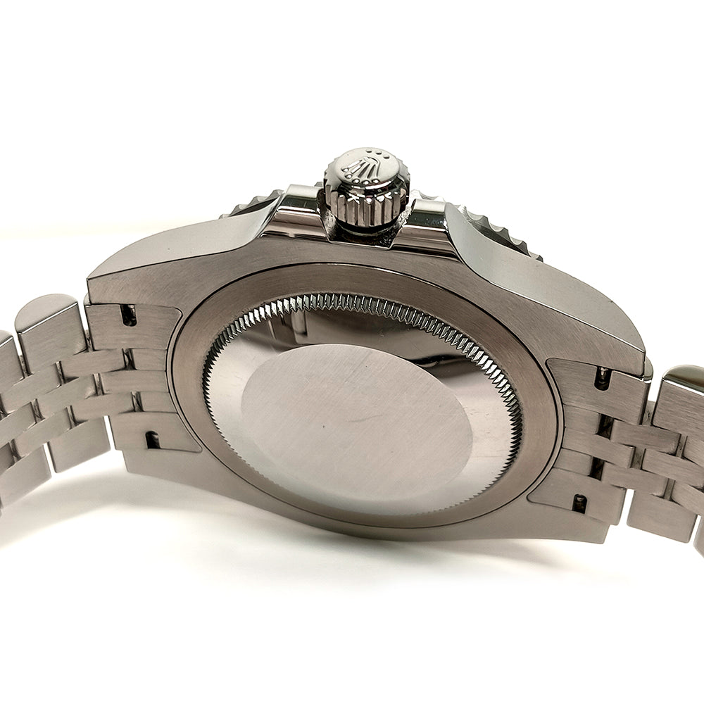 The Rolex GMT Master II is a timeless classic, perfect for stylish and sophisticated everyday wear. This particular model features a black dial with dot and index hour markers, as well as a date display at 3 o'clock. It also features a GMT second time zone with the green and black ceramic bezel allowing you to easily switch between time zones without needing to reset the watch. The 40mm stainless steel case houses an automatic movement that has been certified as a chronometer, ensuring accuracy and precision. The watch is also fitted with a Jubilee bracelet along with an Oysterlock safety clasp for extra protection from accidental opening or removal. With its luxurious quality and design, this Rolex GMT Master II is sure to make a statement wherever you go.