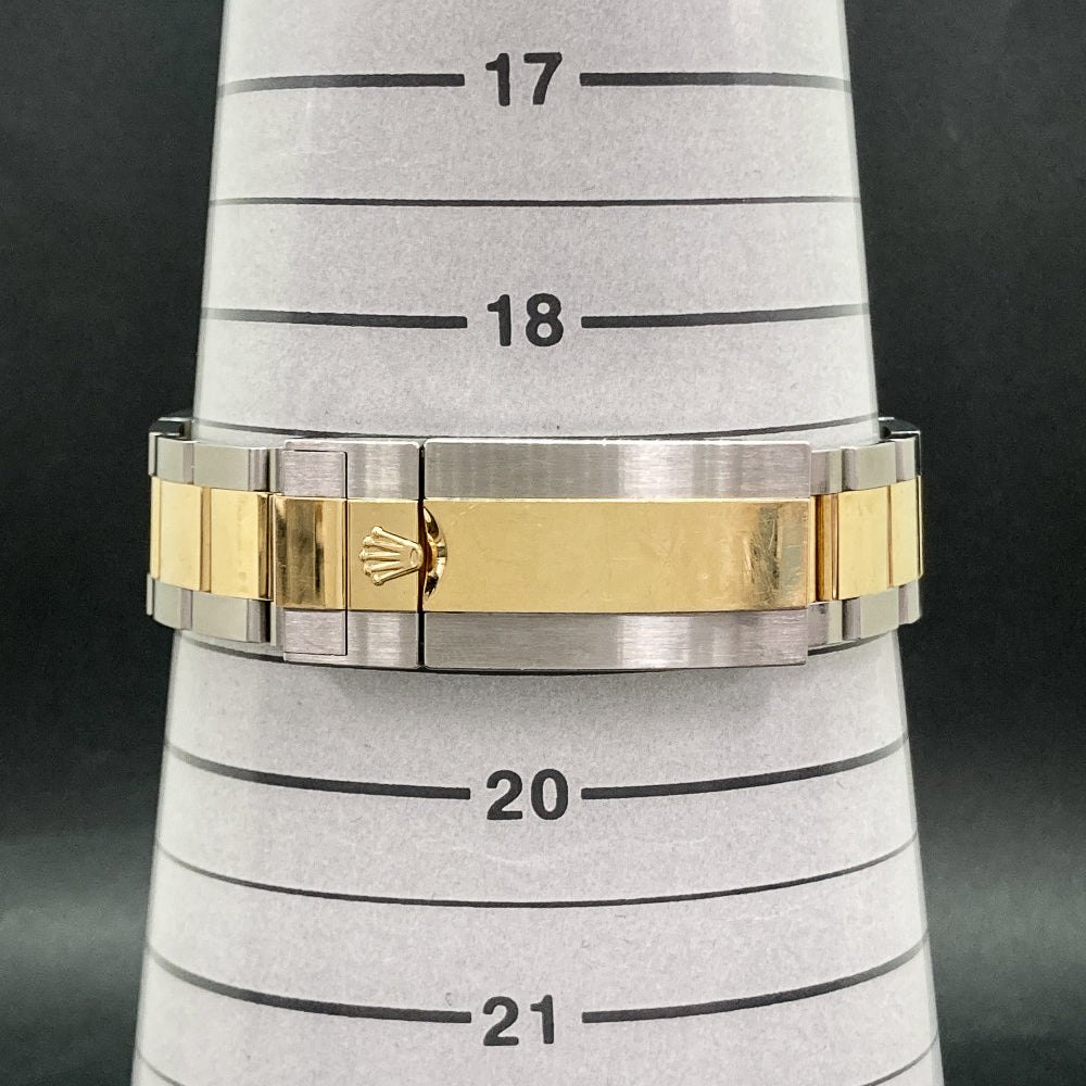 Stainless steel case with a oystersteel bracelet with 18kt yellow gold center links. Uni-directional rotating yellow gold bezel with black cerachrom fill. Black dial with luminous yellow gold-tone hands and dot hour markers. Minute markers around the outer rim. Dial Type: Analog. Luminescent hands and markers. Date display at the 3 o'clock position. Rolex calibre 3235 automatic movement with a 70-hour power reserve. Scratch resistant sapphire crystal. Screw down crown. Solid case back. Round case shape. Case size: 43 mm. Fold over clasp with a safety release. Water resistant at 1220 meters / 4000 feet. Functions: date, hour, minute, second, chronometer. Luxury watch style. Watch label: Swiss Made.