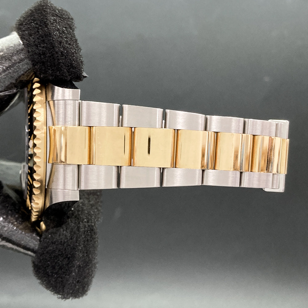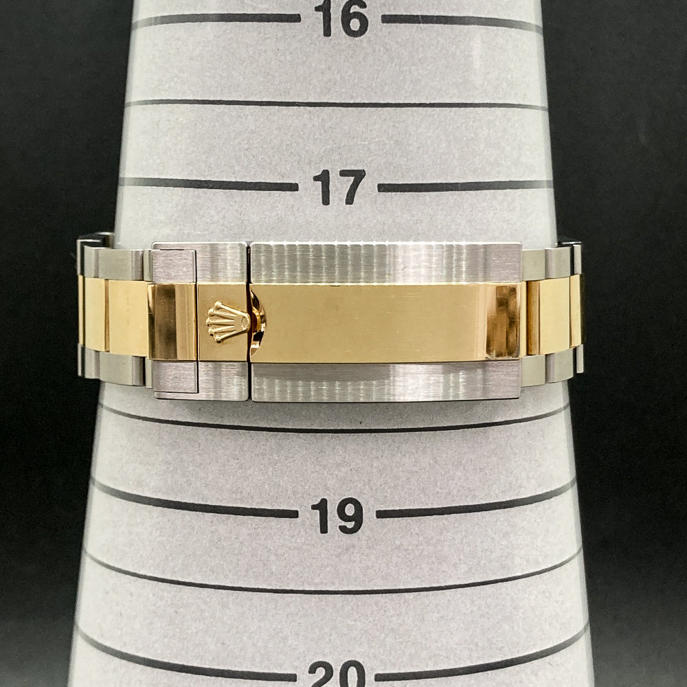 Stainless steel case with a oystersteel bracelet with 18kt yellow gold center links. Uni-directional rotating yellow gold bezel with black cerachrom fill. Black dial with luminous yellow gold-tone hands and dot hour markers. Minute markers around the outer rim. Dial Type: Analog. Luminescent hands and markers. Date display at the 3 o'clock position. Rolex calibre 3235 automatic movement with a 70-hour power reserve. Scratch resistant sapphire crystal. Screw down crown. Solid case back. Round case shape. Case size: 43 mm. Fold over clasp with a safety release. Water resistant at 1220 meters / 4000 feet. Functions: date, hour, minute, second, chronometer. Luxury watch style. Watch label: Swiss Made.