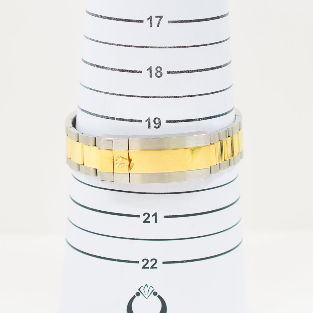 Stainless steel case with a oystersteel bracelet with 18kt yellow gold center links. Uni-directional rotating yellow gold bezel with black cerachrom fill. Black dial with luminous yellow gold-tone hands and dot hour markers. Minute markers around the outer rim. Dial Type: Analog. Luminescent hands and markers. Date display at the 3 o'clock position. Rolex calibre 3235 automatic movement with a 70-hour power reserve. Scratch resistant sapphire crystal. Screw down crown. Solid case back. Round case shape. Case size: 43 mm. Fold over clasp with a safety release. Water resistant at 1220 meters / 4000 feet. Functions: date, hour, minute, second, chronometer. Luxury watch style. Watch label: Swiss Made.