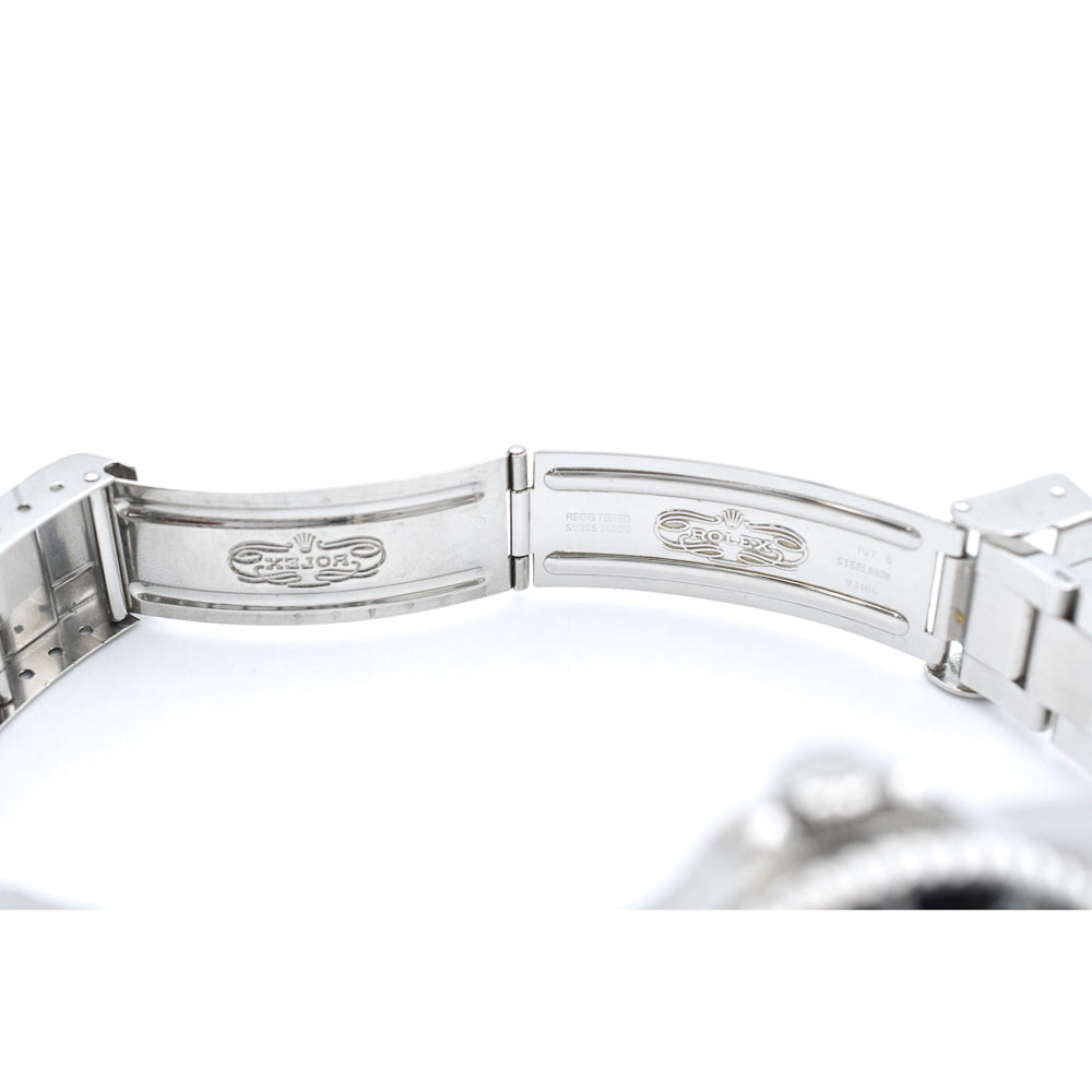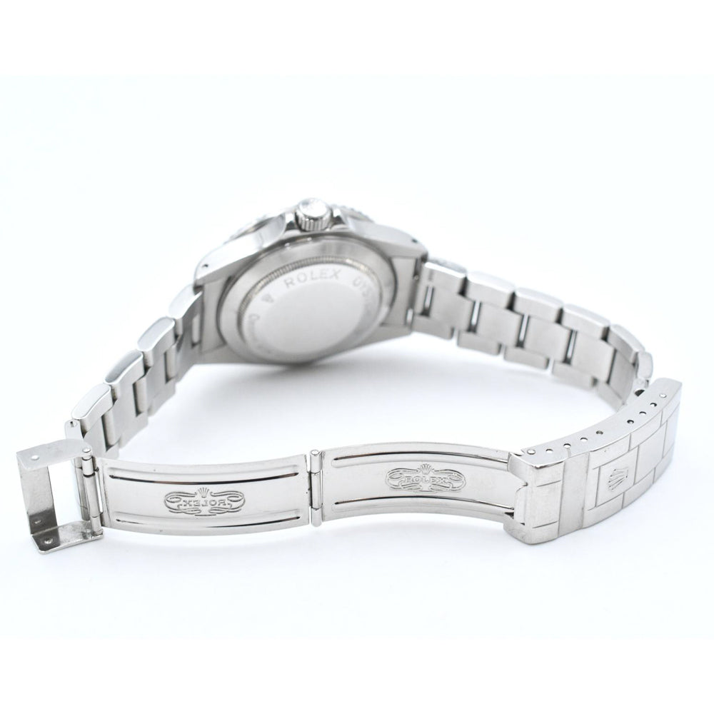 Silver-tone stainless steel case and bracelet. Bi-directional rotating black stainless steel bezel. Black dial with index hour markers. Dial Type: Analog. Luminescent hands and markers. Date display at the 3 o'clock position. Automatic movement. Scratch resistant sapphire crystal. Screw down crown. Solid case back. Round case shape, case size: 40 mm, case thickness: 15 mm. Band width: 20 mm, band length: 7.25 inches. Fold over clasp. Water resistant at 30 meters / 100 feet. Functions: hour, minute, second, date, power reserve, water resistant. Sea-dweller Series. Luxury watch style. Watch label: Swiss Made.