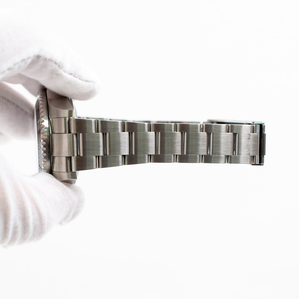 Stainless steel case with a stainless steel Rolex oyster bracelet. Uni-directional rotating stainless steel bezel with black cerachrom top ring. Deep blue dial with luminous silver-tone Mercedes-logo, sword, and Breguet-style shape hands and dot hour markers. Minute markers around the outer rim. Dial Type: Analog. Luminescent hands and markers. Date display at the 3 o'clock position. Rolex calibre 3135 automatic movement with a 50-hour power reserve. Scratch resistant sapphire crystal. Screw down crown. Titanium case back. Round case shape. Case size: 44 mm. Oysterlock clasp. Water resistant at 3900 meters / 12800 feet. Functions: date, hour, minute, second, chronometer. Dive watch style. Watch label: Swiss Made.
