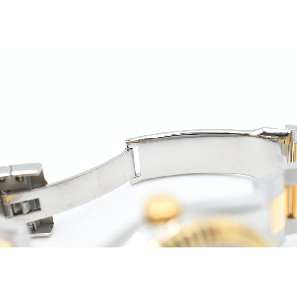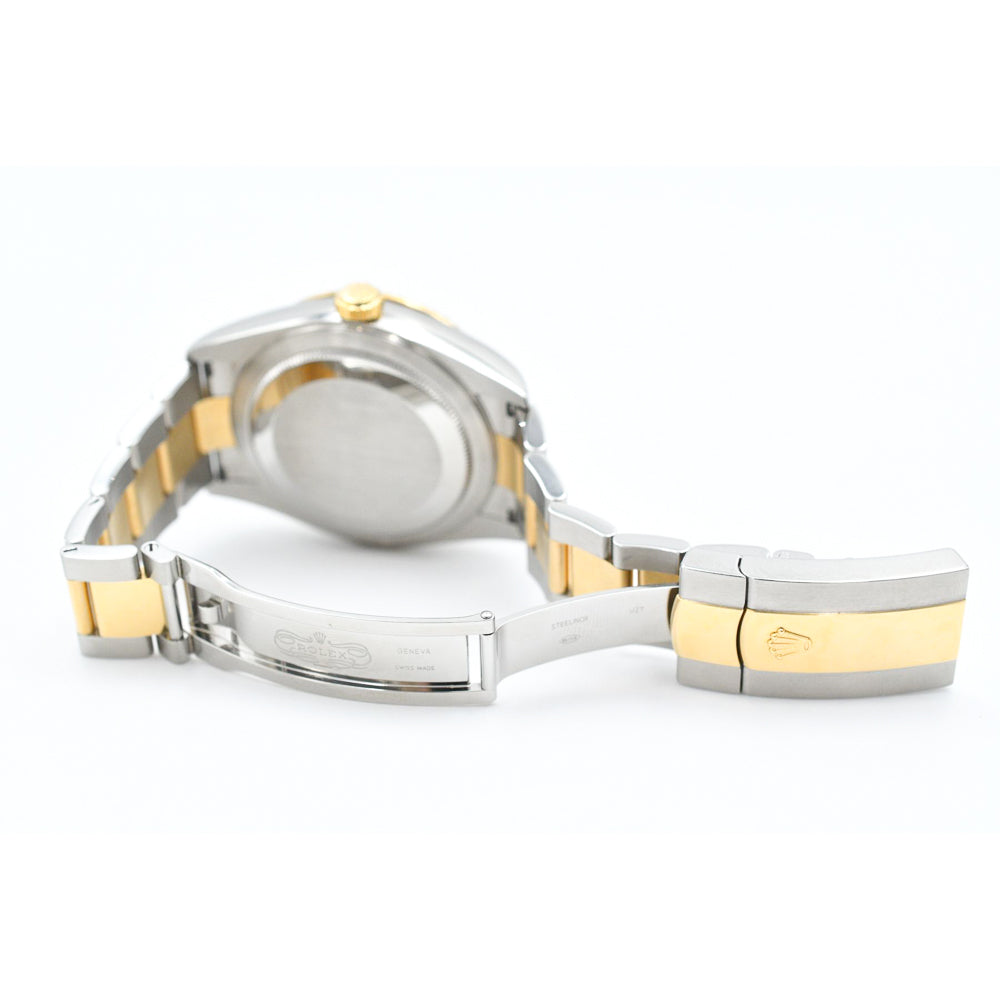 Silver-tone stainless steel case with a two-tone (silver-tone and yellow gold-tone) stainless steel and 18kt yellow gold oyster bracelet. Bi-directional rotating ring command yellow gold-tone 18kt yellow gold bezel. Black dial with yellow gold-tone hands and index hour markers. Minute markers around the outer rim. Dial Type: Analog. Luminescent hands and markers. Date display at the 3 o'clock position. One subdial displaying: 24 hour. Rolex Calibre 9002 Automatic movement, based upon Rolex Calibre 9001, containing 40 Jewels, bitting at 28800 vph, and has a power reserve of approximately 72 hours. Scratch resistant sapphire crystal. Screw down crown. Solid case back. Round case shape, case size: 42 mm. Fold over clasp with a safety release. Water resistant at 100 meters / 330 feet. Functions: annual calendar, month, date, GMT, second time zone, hour, minute, second, chronometer.