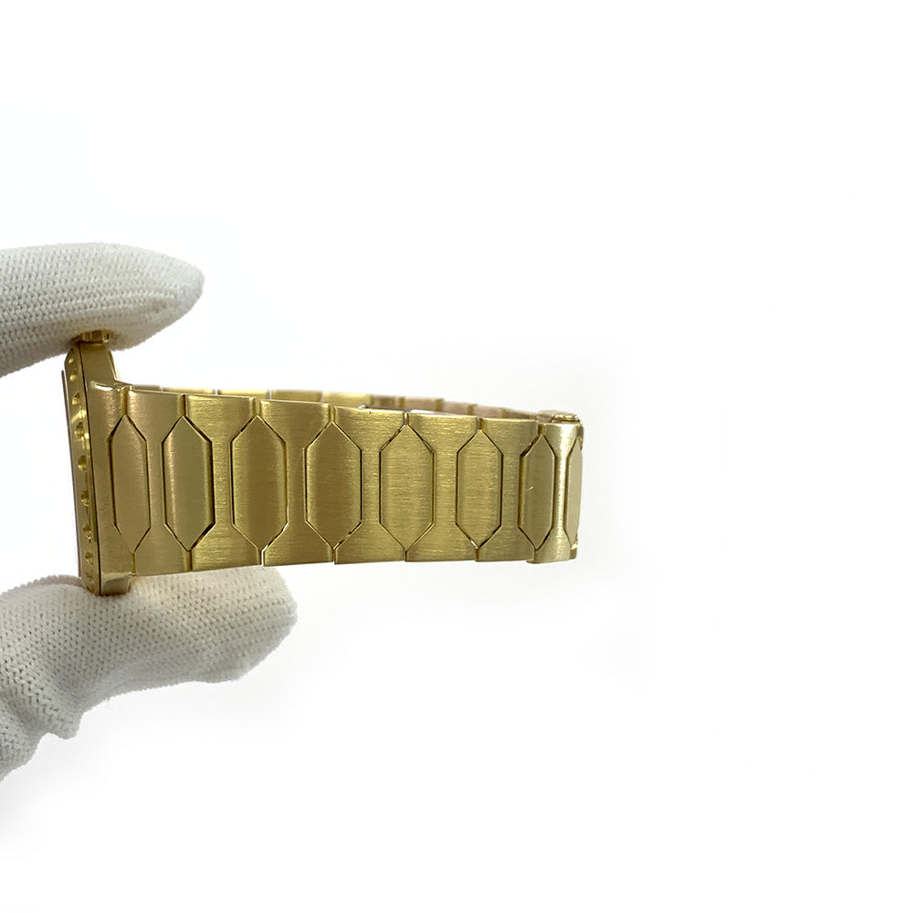 18kt yellow gold 34mm case with 18k yellow gold crown and pusher. 18k yellow gold bezel. Champagne dial with stick numeral hour markers and hands. Hours, minutes, seconds and date. Date window located at the 3 o'clock position. Automatic movement. 18k yellow gold bracelet with push button foldover clasp. Water resistant up to 50m or 150ft.
